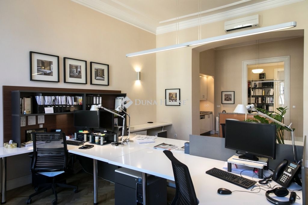 Egyedülálló lehetőség egy patinás, központi elhelyezkedésű műemléki épületben!A pezsgő belvárosi hangulat és a kiváló közlekedési kapcsolatok tökéletes harmóniáját kínálja ez a különleges ingatlan.Ideális választás boutique cégek, kreatív stúdiók vagy kurátori irodák számára, akik inspiráló, karakteres munkakörnyezetet keresnek.A 134 m²-es, 4 szobás iroda világos, természetes fényben úszó, tágas és elegáns helyiségekkel rendelkezik.A saját konyha és a zuhanyzós vizesblokk a mindennapi kényelmet szolgálja, az elrendezés pedig rugalmasan alakítható az igények szerintThe bright office space, filled with natural light, features a private kitchen and a bathroom with a shower, and is available furnished upon request.An ideal choice for boutique firms, creative studios, or curatorial offices seeking an inspiring and characterful work environment.This exceptional property perfectly balances the vibrant downtown atmosphere with excellent public transport connections.A unique opportunity in a prestigious, centrally located heritage building!