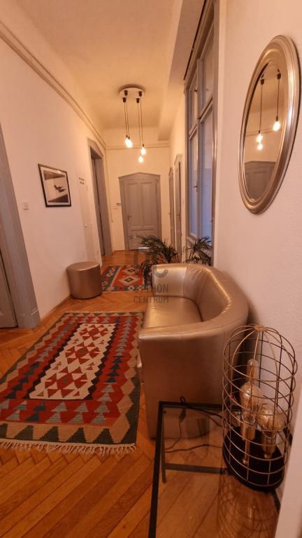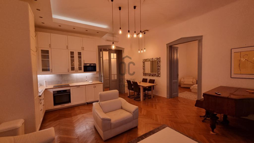Fedezze fel ezt az exkluzív belvárosi lakást Budapest szívében, amely ideális választás éppúgy középkorú mint fiatal ügyfelek számára, akik kényelmes, modern otthont keresnek. Az ingatlan kiváló állapotban várja új bérlőjét, hiszen a 98 nm-es lakásban három tágas szoba található, melyek közül a nappali különösen figyelemre méltó, hiszen nagy belmagassága és amerikai konyhája egyedülálló atmoszférát teremt. A lakás bútorozott, a beépített bútorok és szekrények maximális kihasználtságot biztosítanak, így Önnek csak a személyes tárgyait kell magával hoznia. A fűtés gáz cirkó rendszerrel biztosított, míg a klíma gondoskodik a kellemes hőmérsékletről a forró nyári hónapokban. A környék ellátottsága kiváló, hiszen a közeli üzletek, éttermek és kávézók minden igényt kielégítenek. A lakás kisállattal költözhető, így a kedvencével együtt élvezheti a városi élet nyújtotta lehetőségeket. A közlekedési csomópont közelsége miatt a közlekedés kitűnő; a tömegközlekedési lehetőségek, mint a metró, buszok és villamosok, mind csupán néhány perc sétára találhatóak. Ezáltal a város bármely pontja könnyen elérhető, legyen szó munkáról vagy szabadidős programokról. A belváros nyüzsgése mellett a környék csendes és biztonságos, így ideális választás lehet családok, fiatal párok vagy akár egyedülállók számára is. Ne hagyja ki ezt a lehetőséget, hiszen az ilyen exkluzív ingatlanok gyorsan elkelnek a felkapott környéken. Ha bármilyen kérdése van a lakással vagy a bérlés folyamatával kapcsolatban, bizalommal kereshet minket. Segítünk Önnek megtalálni álmai otthonát!