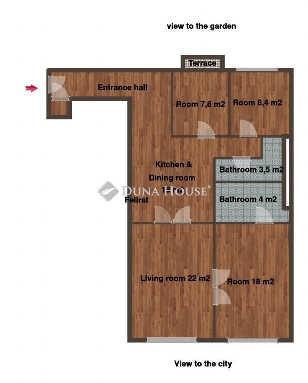 * Nappali + 3 hálószoba, tágas étkezős konyhával