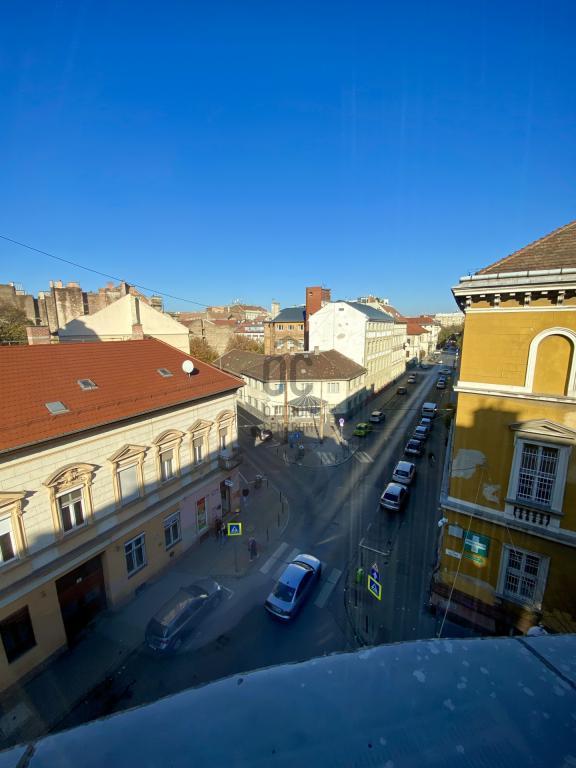 A környék központi, mégis nyugodt, busz- és metrómegállók pár perc sétára, az ELTE és a Corvinus egyetem 10–15 percen belül elérhető.