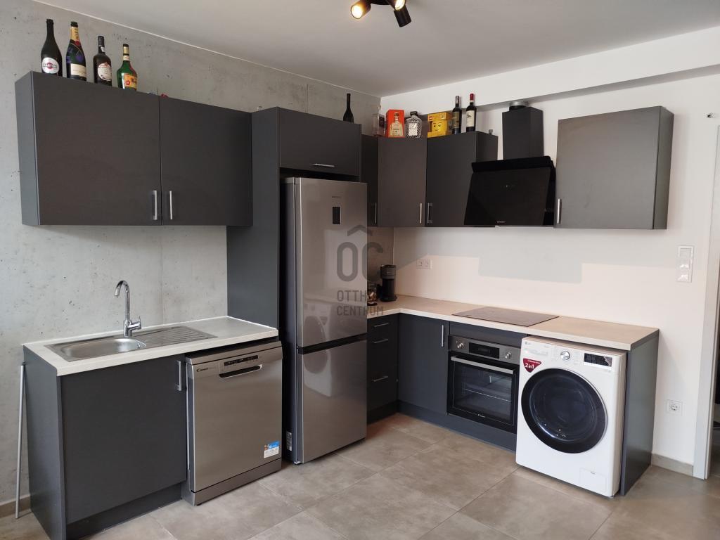 Fully equipped kitchen with induction hob, washing machine, and dishwasher