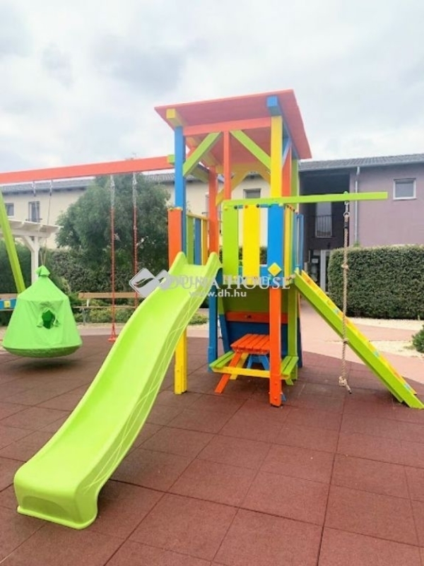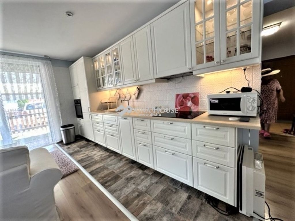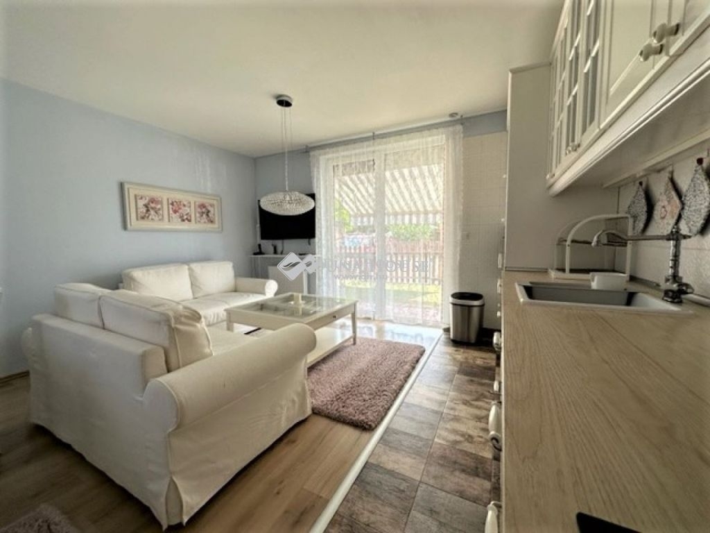Halásztelken közel a központhoz, újszerű 52nm-es, kertkapcsolatos lakás hosszú távra kiadó.Ide csak költözni kell!Az ingatlan egy zárt lakópark első lakása, ahova távirányítós kapuk biztosítják a bejutást.A lépcsőházi ajtó is elektromos ajtónyitóval működik, kaputelefon biztosítja a vendégek beengedését.Világos, bútorozott, háztartási gépekkel felszerelt (mosó-szárító gép, beépített sütő, beépített hűtő-fagyasztó gép, beépített elektromos főzőlap, szag elszívó, mosogatógép, mikróhullámú sütő).Az élettér központja az egylégtérű nappali, ahol amerikai konyha és 6 személyes étkező került kialakításra.A nappali részben 2 db, kétszemélyes, kihúzható kanapé található.A szobában és a nappaliban televízió, valamint korszerű hűtő-fűtő klíma berendezés is rendelkezésre áll.Az ablakokon és a nappaliban található 2 db terasz ajtón elhúzható szúnyogháló, valamint időzíthető, távkapcsolós redőny és a terasz felett, távirányítóval nyitható napernyő is a lakók kényelmét szolgálja.Egyedi órákkal felszerelt (gáz, villany, víz).Az ingatlanhoz 100 nm saját lekerített kertrész tartozik, aminek a közepén egy 20 nm terasz van.A kertben a locsolást öntöző rendszer biztosítja.A lakáshoz tartozik egy kocsibeálló a zárt lakóparkban a kert előtt, bérlésének ára megbeszélés kérdése.Egyébként az utcán ingyen parkolási lehetőség.A lakópark közepén egy közösségi tér található, ahol egy felújított, gyönyörű, színes játszótér szolgálja a gyerekek szórakozását.Kérdéseivel keressen bizalommal, akár a hét végén is. Hibás hirdetés bejelentése