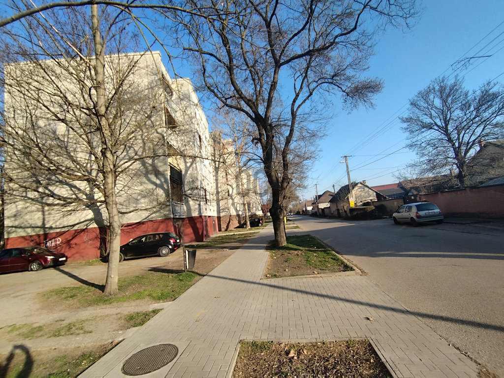 A tégla falazatú társasház zárt lépcsőházas, főút mellett, a belváros közelében található, parkolás az épület előtt ingyen lehetséges.