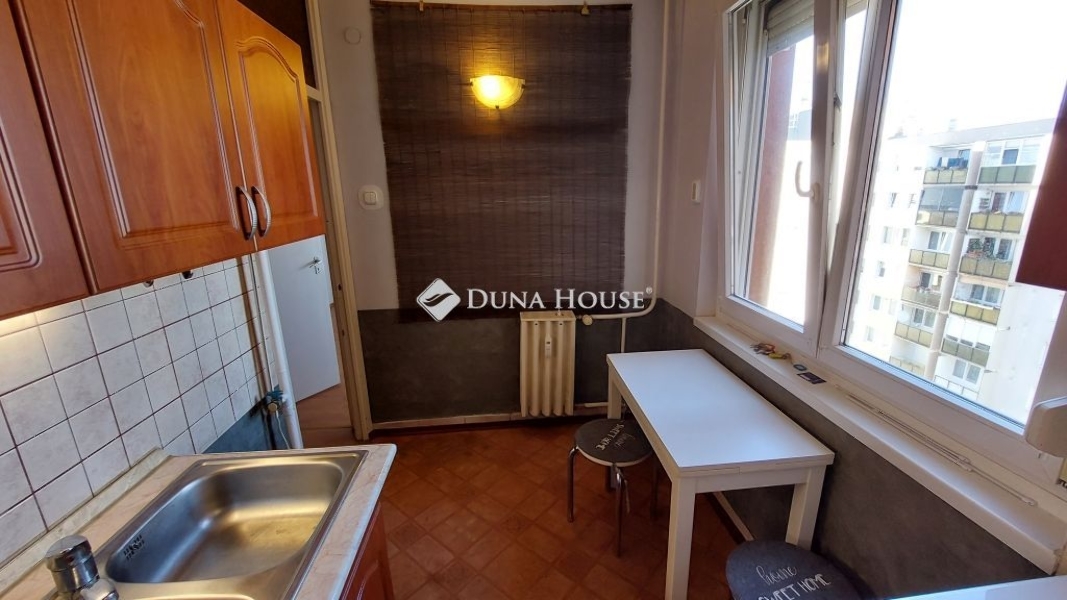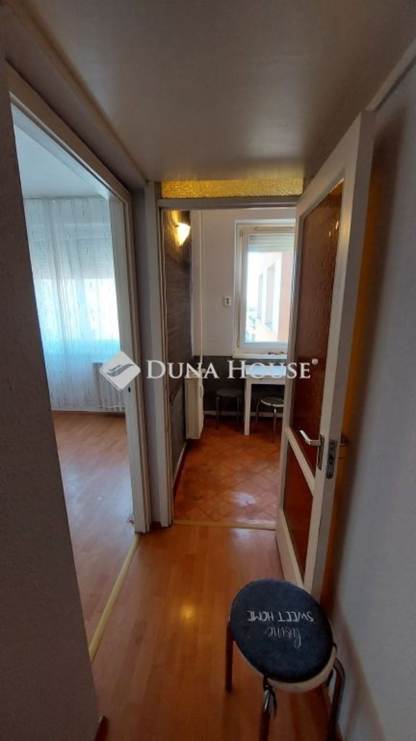 A lakás egy liftes panelház nyolcadik emeletén található. Két szoba hall, konyha étkezővel, előszoba, fürdő, és külön WC, erkélyes.