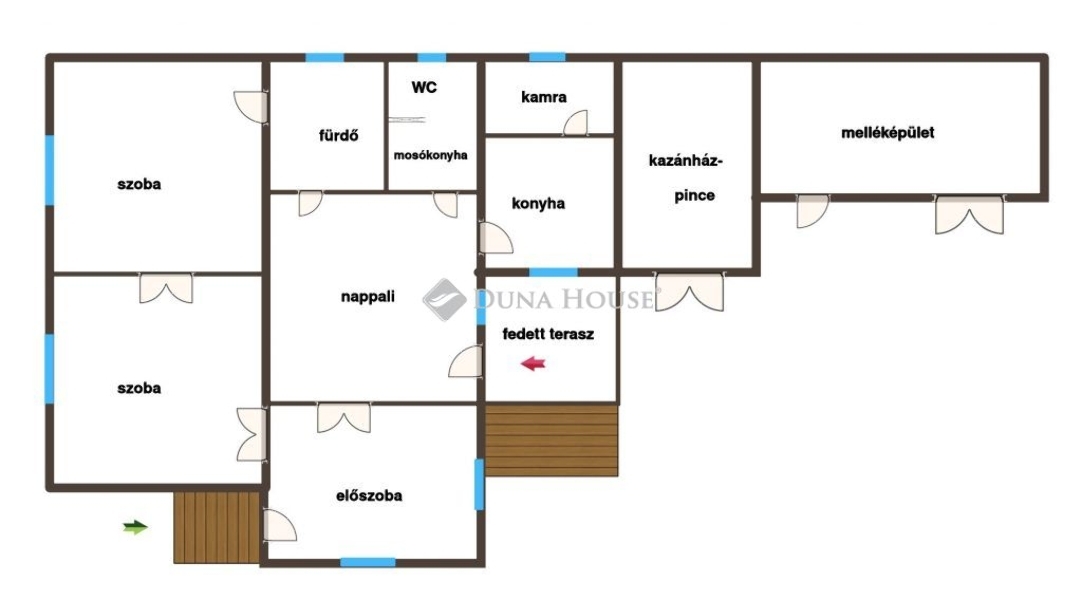 - 3 szoba, konyha, előszoba, fürdő, WC+mosókonyha, kamra, fedett terasz