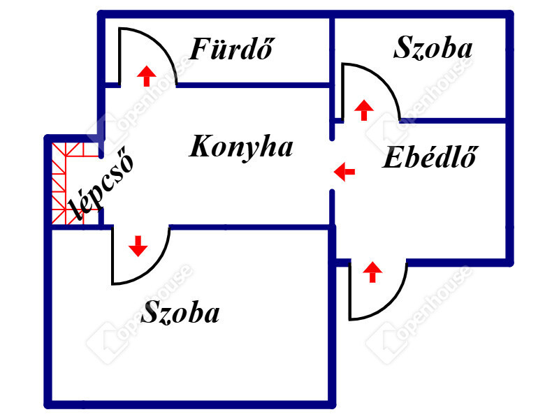 Elrendezését tekintve tökéletes, minden szoba külön nyíló, központi térben elhelyezkedő konyha és étkező ezzel biztosítva minden családtagnak a privát szférát.