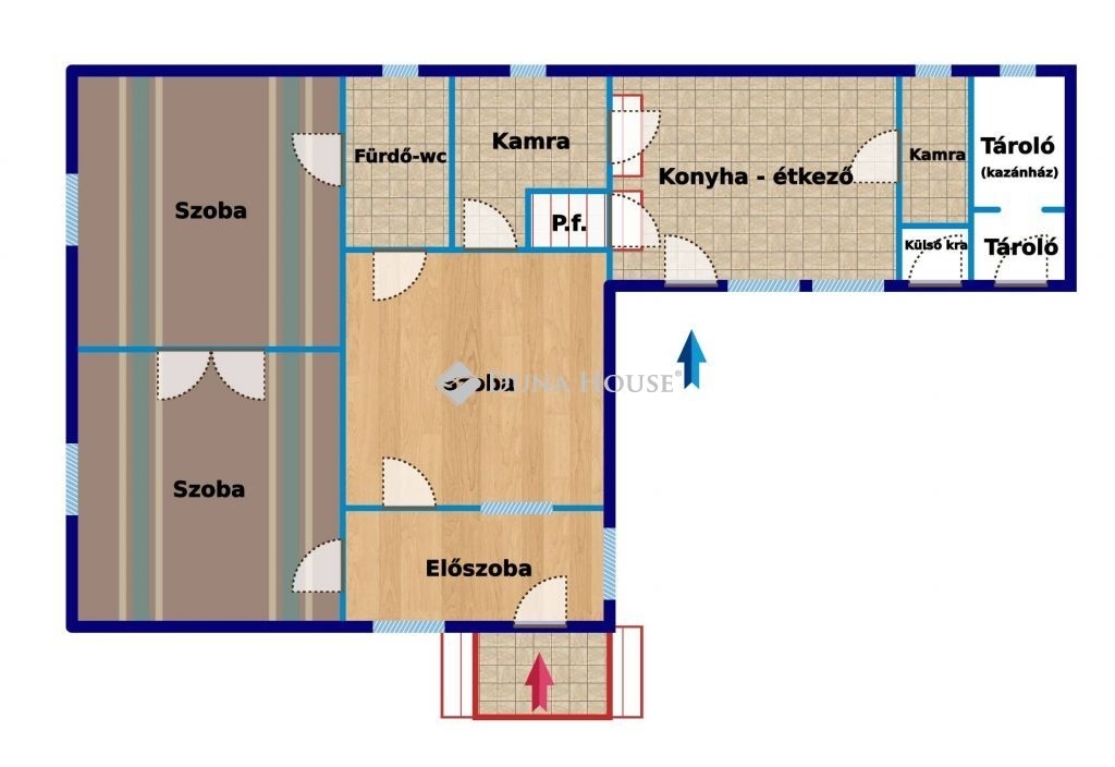 Lakótér: 95 m² – 3 szoba, tágas konyha-étkező