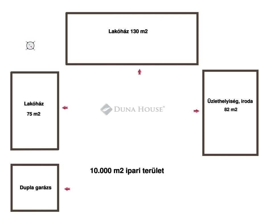 Az ipari övezetben elhelyezkedő telephely további üzleti lehetőségeket kínál. Az épületek többféle célra használhatók, legyen szó állattartásról, műhelymunkáról vagy egyéb gazdálkodási tevékenységről.