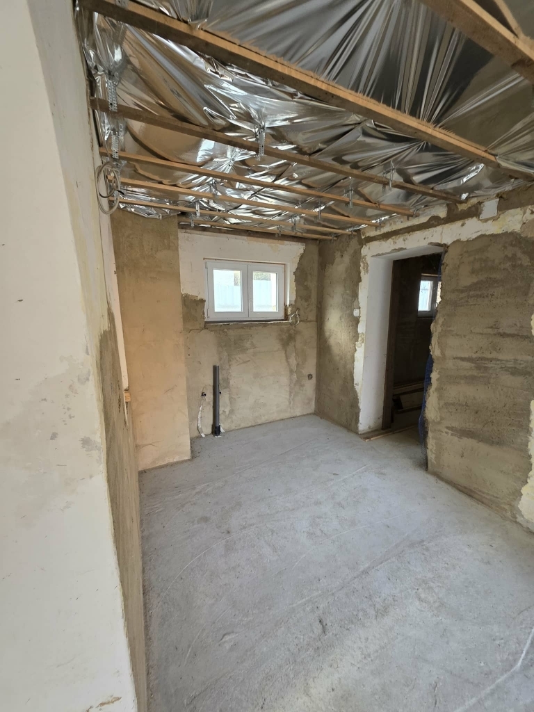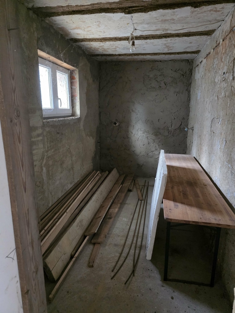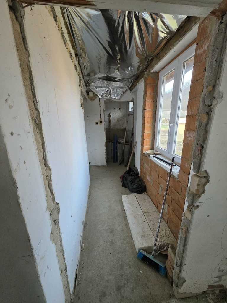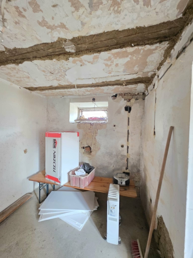 A ház nyílászárói cserélve lettek, felújították a tetőt, szigetelték és betonozták az aljzatot, valamint a mennyezet szigetelése és gipszkartonozása is majdnem teljesen elkészült.