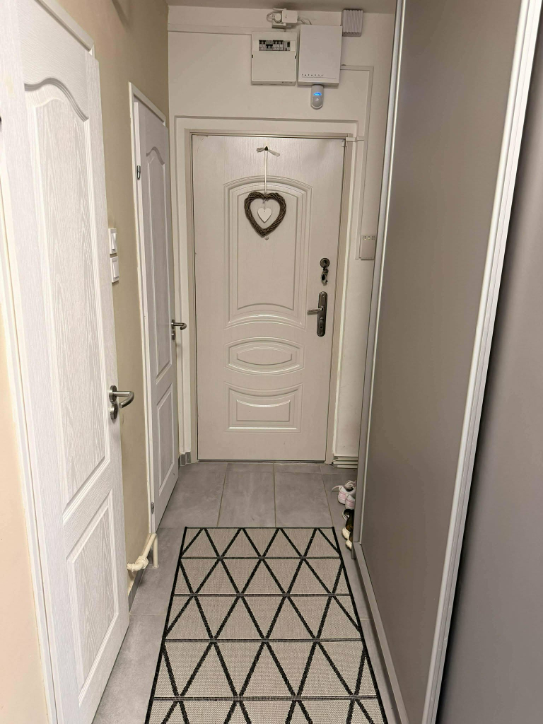 Kisebb ház 60m2-es, kályhával fűthető, jelenleg konyha, nappali, hálószoba, tároló van kialakítva, a fürdőszoba - szerkezetkész- bojlernek, vízvezetékeknek kiállások kialakítva, falak glettelve.