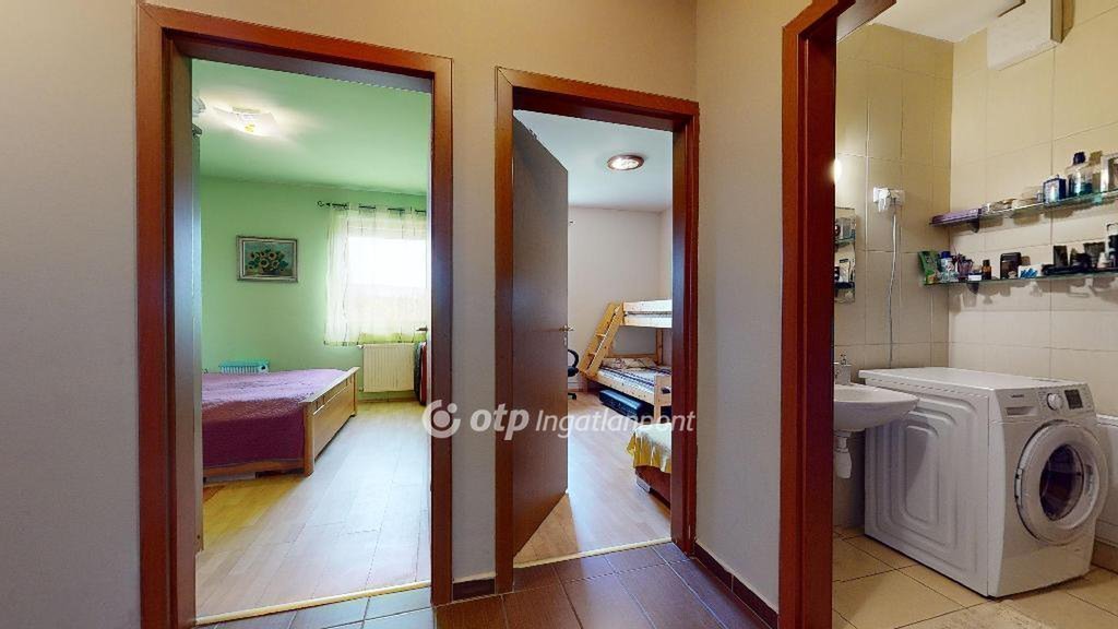 A szobák laminált parkettával fedettek, a többi helyiség hideg burkolattal ellátott.