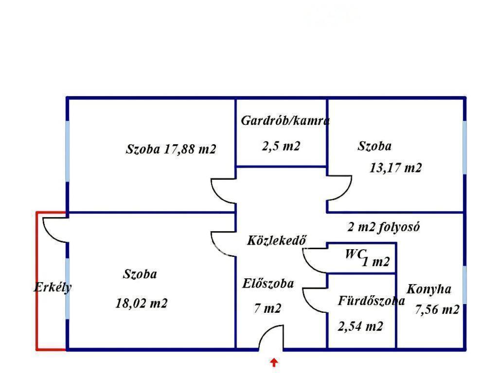Praktikus kialakítás: A lakás elrendezése kiváló: 3 különnyíló szoba, fürdőszoba, külön WC, előszoba, konyha és egy kamra (mely igény esetén gardróbbá alakítható) áll rendelkezésre.
