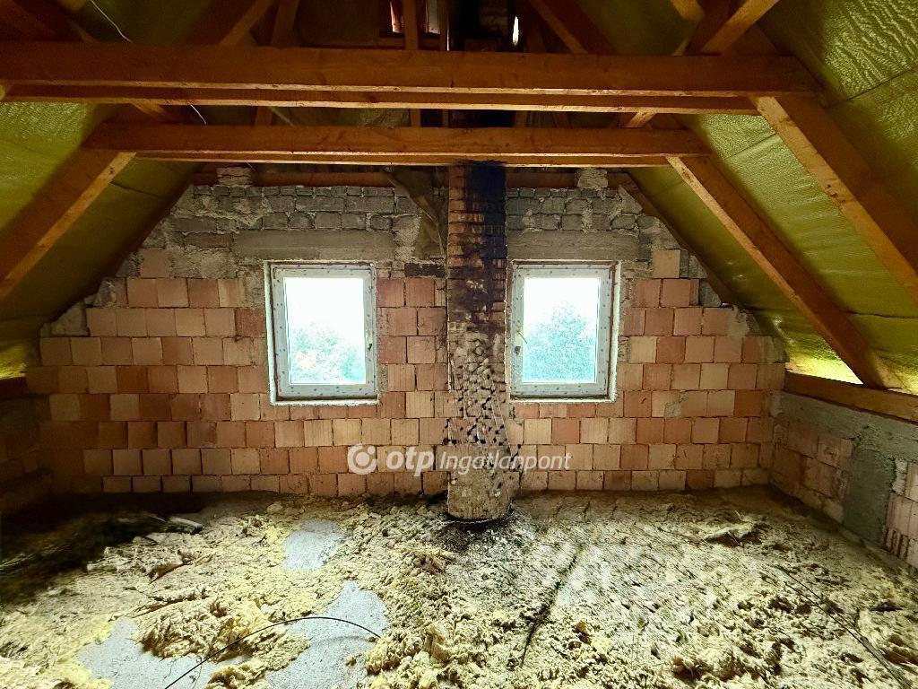 A ház földszintje van jelenleg használatban, míg a tetőtér beépítése részben előkészített, de befejezésre vár. A tetőtérben a helyiségek már kialakításra kerültek, a tetőszerkezet teljesen felújított, párazáró fóliával ellátva, és az összes nyílászáró - a földszinten és a tetőtérben is - modern, műanyag kivitelű. A belső munkálatok (gipszkartonozás, elektromos hálózat és burkolás) már az új tulajdonosra várnak, így a ház saját igényekre szabható, akár többgyermekes család, akár kétgenerációs otthonként is tökéletesen kialakítható.
