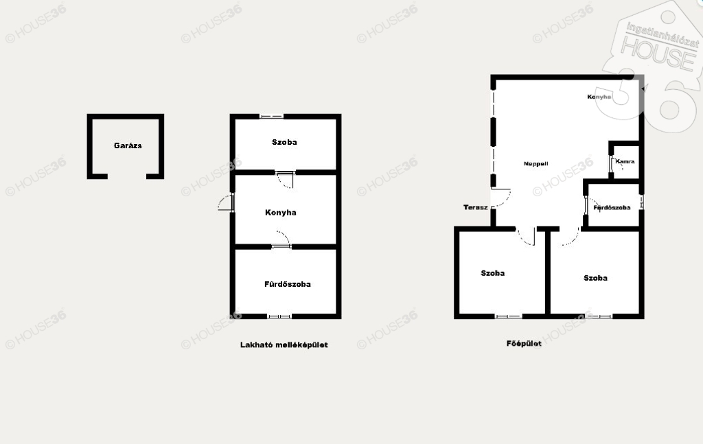 Főépületben nappali plusz 2 nagy szoba található, a lakható melléképületben egy szoba, konyha, fürdőszoba került kialakításra.