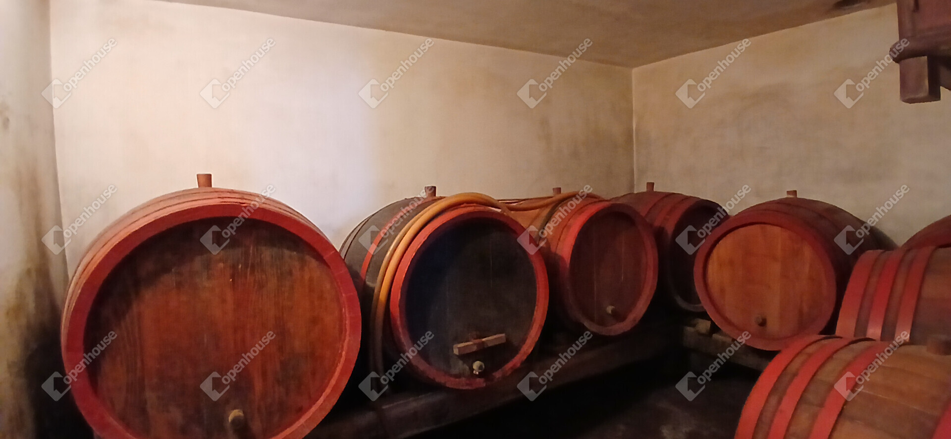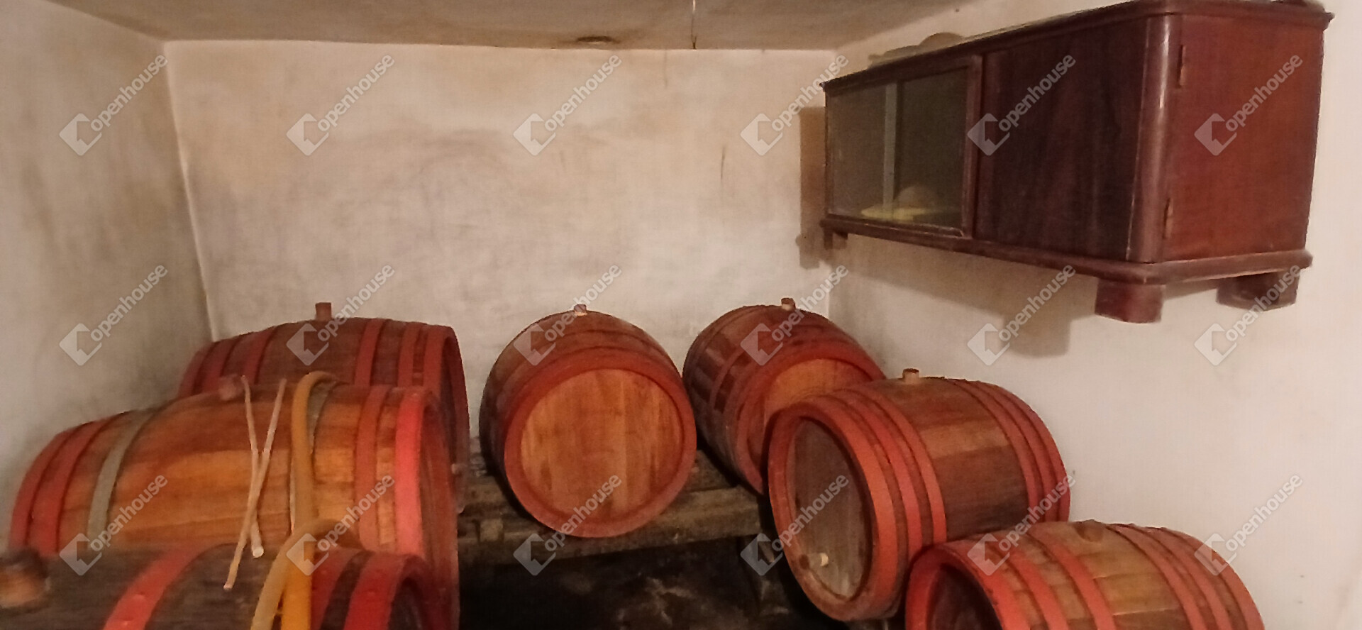 A kelet-nyugati tájolású épület összesen 32 m² alapterületű, melyben egy 12 m²-es konyha–szoba, valamint az épület alatt présház 7,74 nm és borospince mely 6,52 nm található. A házhoz egy 4,36 m²-es, fedett erkély kapcsolódik, amely ideális hely a reggeli kávéhoz vagy egy pohár bor melletti esti beszélgetéshez. A telken egy különálló, kisebb építmény is helyet kapott, amely szerszámtárólóként funkcionál.