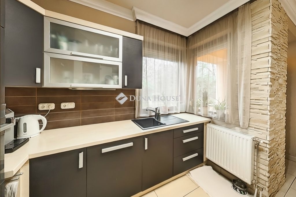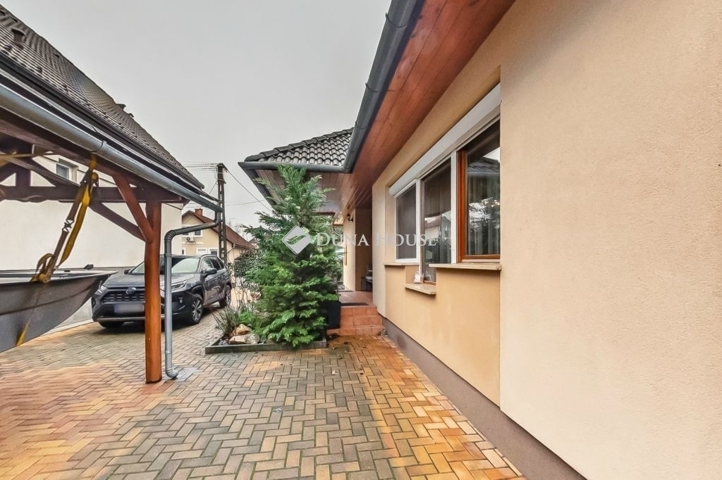 Varázslatos hangulatú udvart teljesen parkosították, automatizált öntözőrendszert telepítettek és baráti összejövetelekre fedett kiülővel és kis halas tóval álmodták meg amit teljesen árnyékolt több 10 éves növényzettel határolt. Az udvarban minden tárolási lehetőség adott így kivételesen rendezett érzettel rendelkezik.