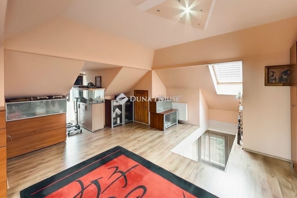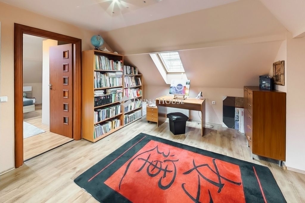 Az emeleti szintet pár évvel ezelőtt építették be és itt egy kivételes nagyságű hálószoba és egy nappali található ami alkalmas további szoba kialakítására is.