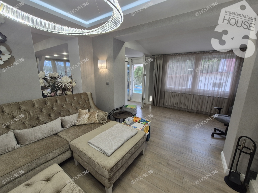 Eladóvá vált egy 2020 -ban gyönyörűen nívós luxus kivitelben felújított 2000-es építésű 153 nm -es nappali + 3 szobás családi ház medencével.