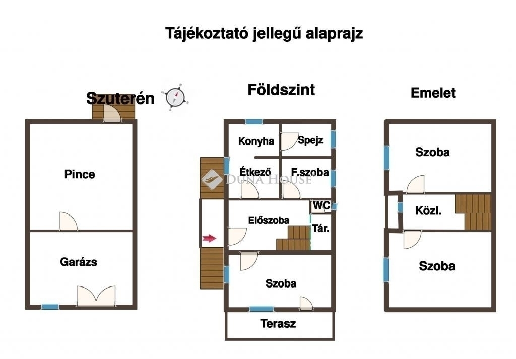 Az emeleten két szoba és közlekedő található. Innen közelítjük meg a padlásteret. Nyílászárói műanyagok, redőnnyel ellátva, melegvizet villanybojler biztosítja.