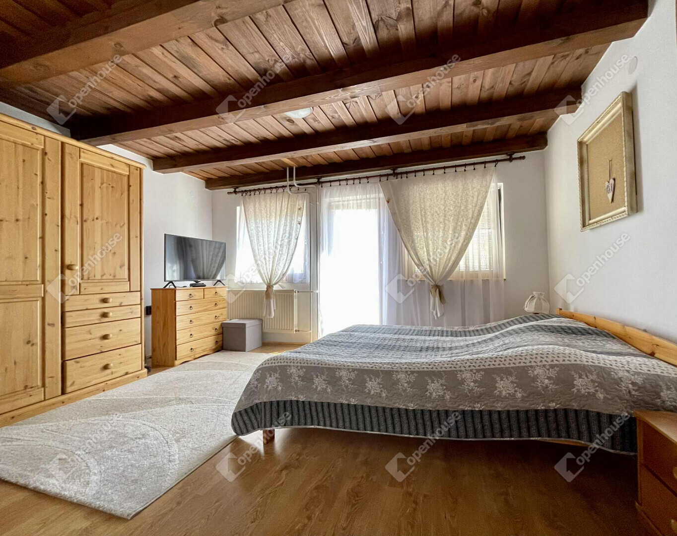 A 144 négyzetméteres ház egy gyönyörű, 5756 négyzetméteres telken fekszik, ahol a keleti tájolású napozóteraszról csodálatos panoráma nyílik – tiszta időben akár Zalaegerszegig is ellátni. A házban három szoba, egy tágas nappali-étkező-konyha egy légtérben, valamint fürdőszoba káddal és WC-vel található. A fűtés szilárd tüzelésű kazánnal, radiátorokon keresztül megoldott, a meleg vizet villanybojler biztosítja.