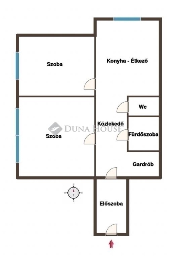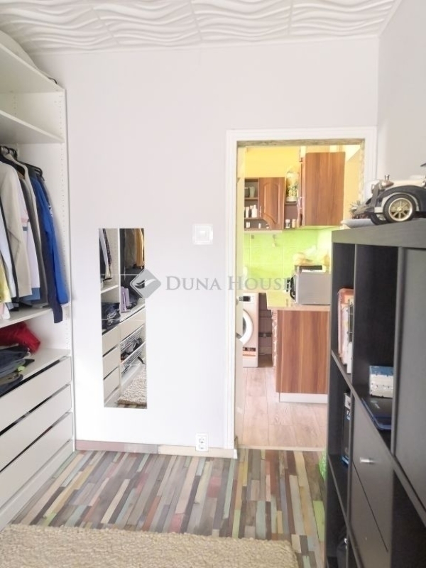 Igen praktikus elrendezésű ingatlan, a különnyíló szobákon és a méretes konyhán kívül a gardrób helyiség is kiemelendő, mely tárolásra szintén tágas helyet biztosít, de akár a fürdőszobához is hosszányitható, így pl. sarokkád számára is helyet biztosíthat.