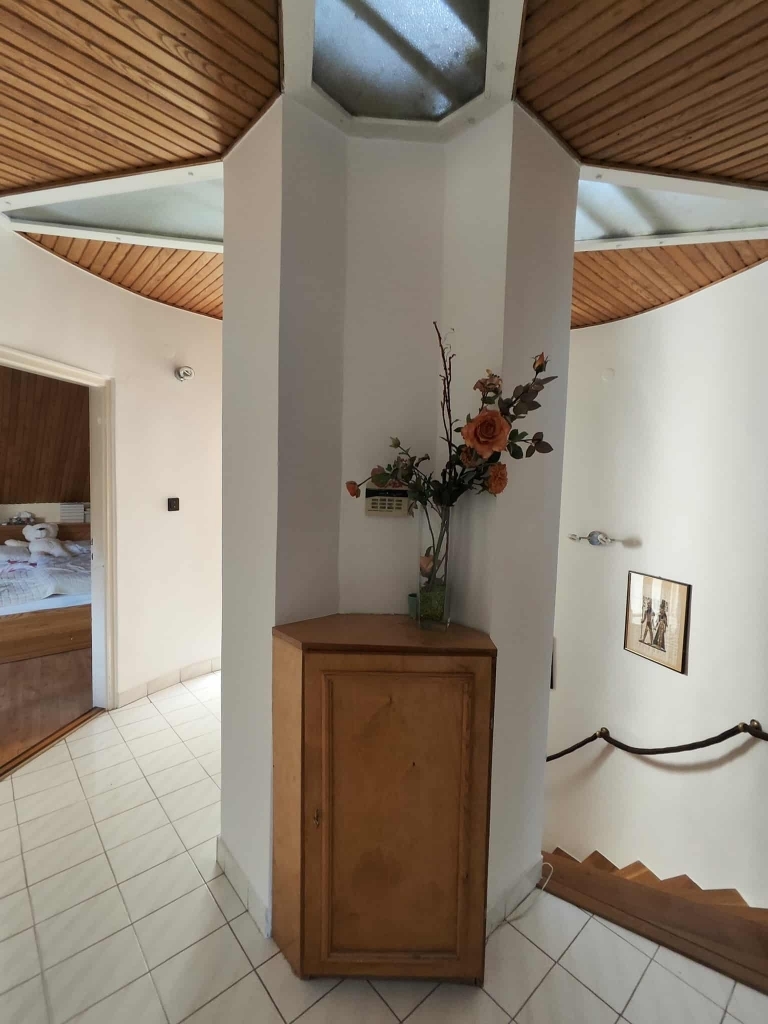 Ez a különleges ingatlan 1988-ban, Makovecz Imre tervei alapján épült, így minden részletében magán viseli az organikus építészet egyedi stílusát és időtálló megoldásait. Folyamatos karbantartással, odafigyeléssel a mai elvárásoknak is tökéletesen megfelelő állapotban lévő otthon.