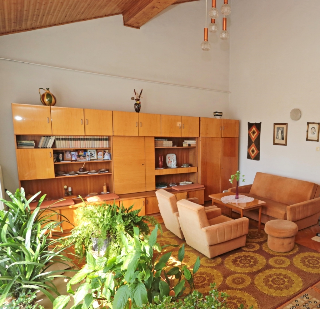 A közel sík, 1672 m²-es telekre 1981-ben, egy neves építész által tervezett, díjnyertes családi ház épült, mely jelenleg ~200 m²-es lakótérrel rendelkezik. A ház jelenlegi kialakítása: