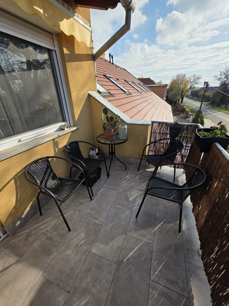 Fűtését gázcirkó biztosítja, míg a hűtésről hűtő-fűtő klíma gondoskodik, továbbá egy 6 m2-es terasz is kellemes kikapcsolódási lehetőséget nyújt. A társasház közös használatú kertje részben térkövezett, itt található a lakáshoz tartozó két gépkocsibeálló is.