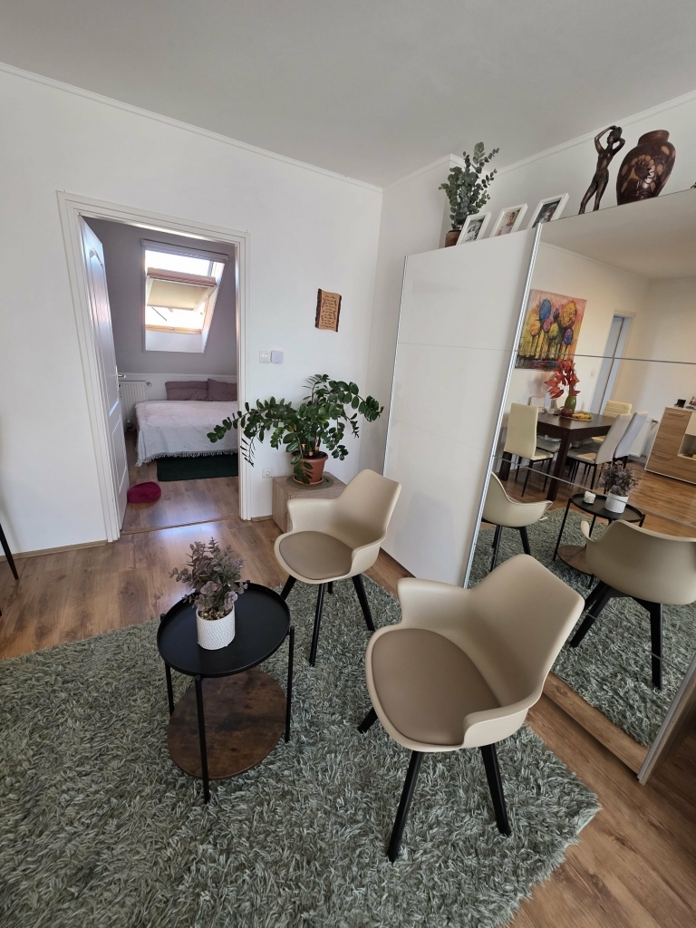 Pécstől mindössze 10 percre, Birján kedvelt lakóparkjában eladó egy bruttó 70 m2, nettó 54 m2-es, két hálószobás, első emeleti lakás, amely tetőtérbeépítéssel kialakított, világos és tágas otthont kínál.