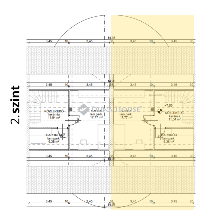 Pinceszint: 104m2