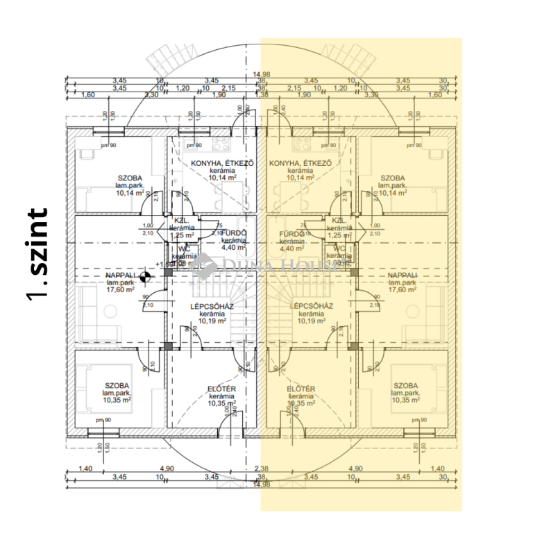 1. szint: 75,5m2