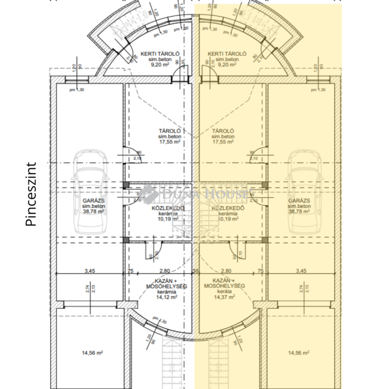 - Pinceszint (garázs + tárolók + gépészet),