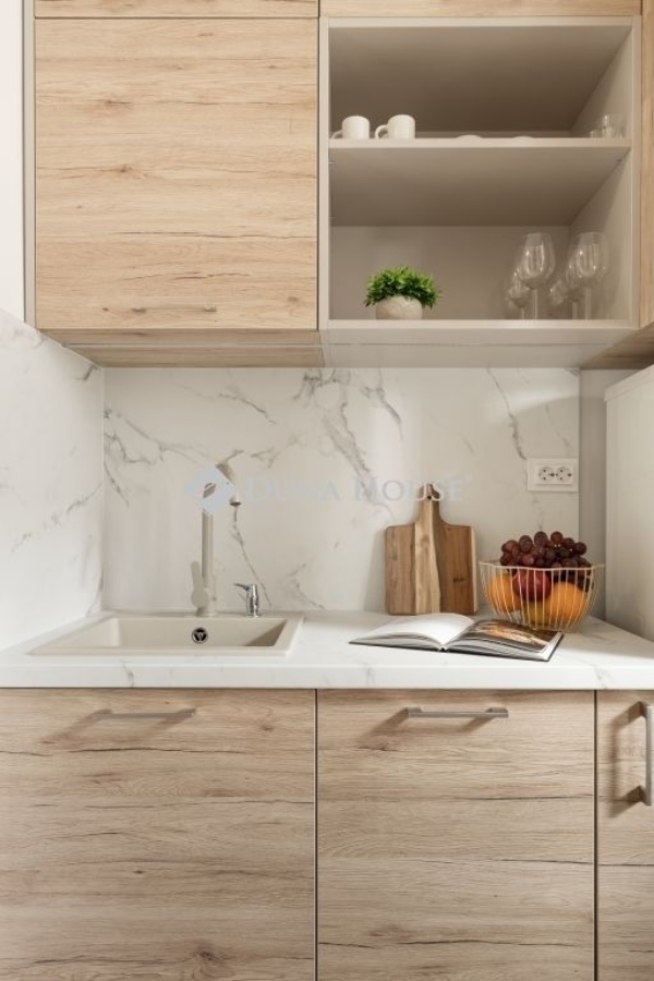 Elrendezés: Világos, tágas nappali étkezővel, külön hálószoba/dolgozószoba, lakberendező által tervezett konyha és modern, kádas fürdőszoba.