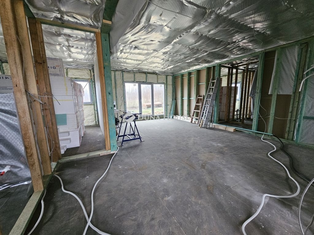 Az ingatlan nappali plusz 3 hálószoba kialakítású, 2 fürdővel, háztartási helyiséggel rendelkezik. A földszintes kialakítás praktikus elrendezése minden korosztály számára megfelelő, a gyermekes családok és az idősebb nemzedék számára is ideális választás lehet.A könnyűszerkezetes kialakítás miatt a ház kiváló szigetelése nem csak a hideg téli napokon jelent megtakarítást, hanem a nyár során is kellemes klímát biztosít, így az év minden napján tökéletes komfortot nyújt lakóinak. Minden helyiségben padlófűtés lesz. A burkolatok még választhatóak, így egyéni ízlésére szabhatja jövendő lakója.Várható átadás 2026. májusa.