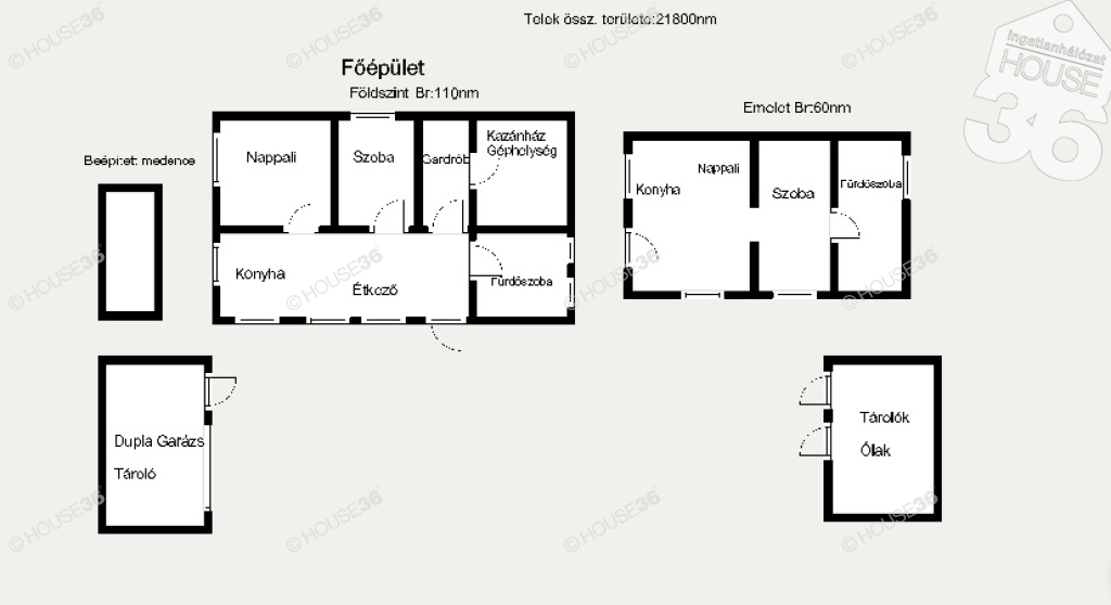 Főépület mellett két melléképület is található mely szabadon alakítható, akár lakórésszé is.