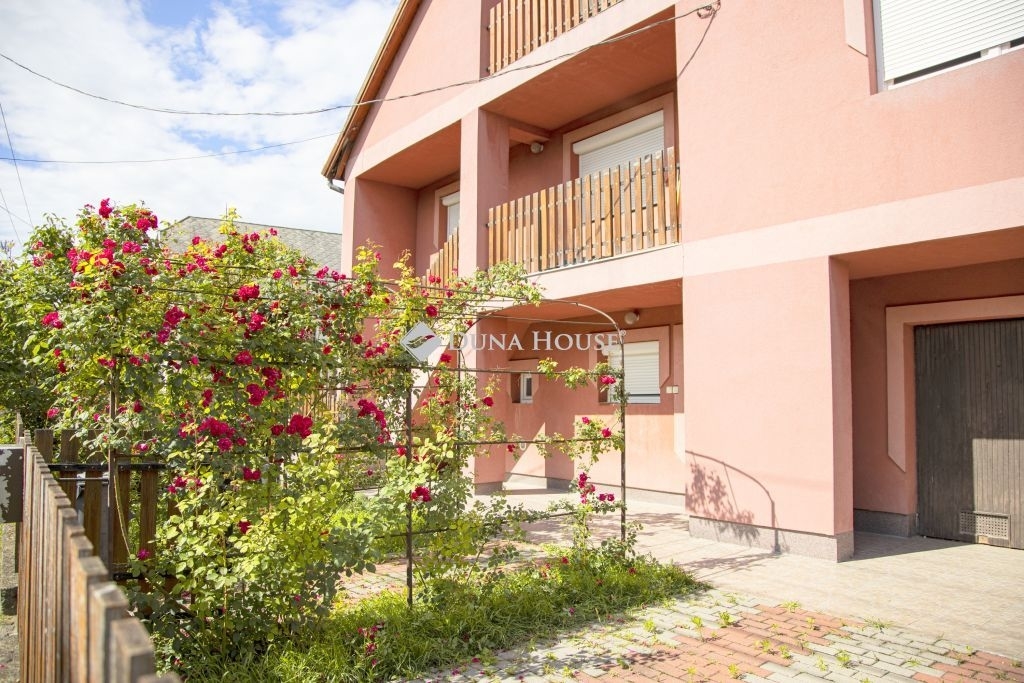 Az ingatlan két szintes kialakítású, alsó szintjén nappali + 2 hálószoba, felső szintjén 3 hálószoba található, fürdő+wc funkciójú helyiség mindkét szinten rendelkezésre áll. Az alsó szinthez tágas, fedett terasz csatlakozik, a felső szinten erkély biztosít szabadtéri pihenési lehetőséget.