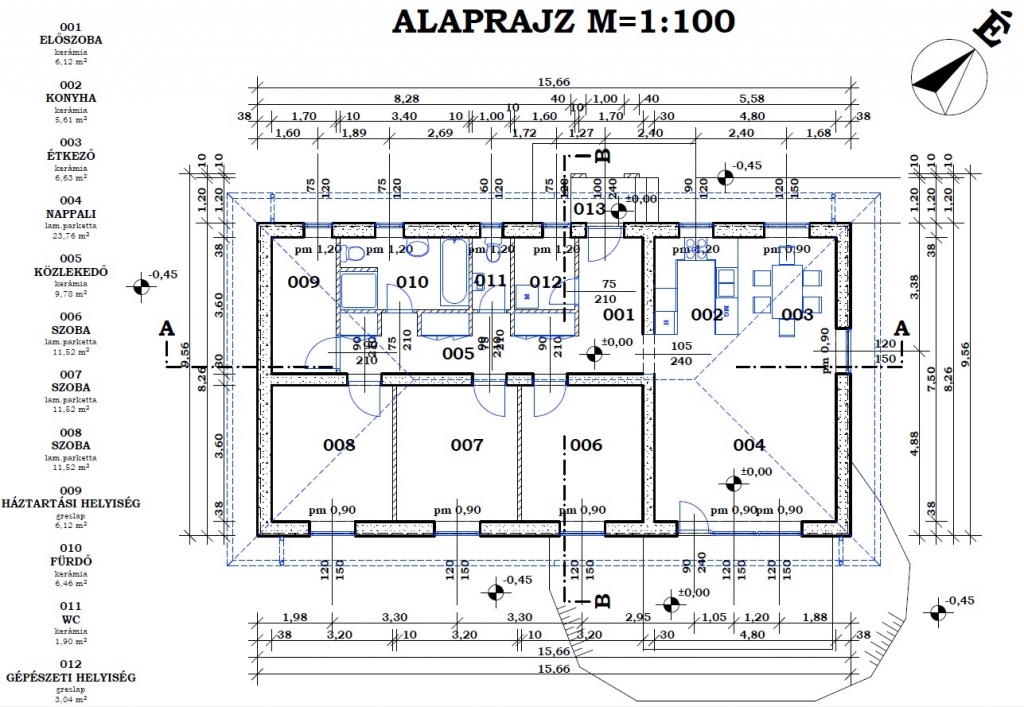 A homlokzati falak 38 cm vastagok, YTONG Lambda GT falazóelemekből. A belső teherhordó falak 30 cm-esek.