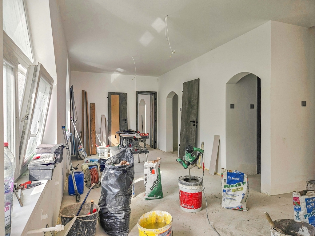 A ház a jelenlegi állapotában eladó, így a vevők a saját ízlésük szerint tudják kiválasztani a burkolatokat, szanitereket.