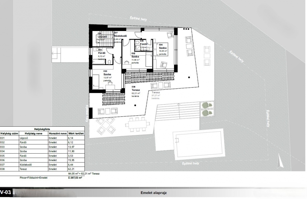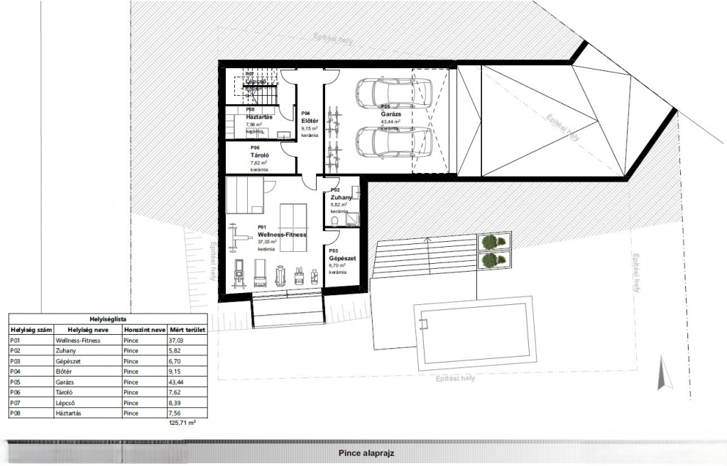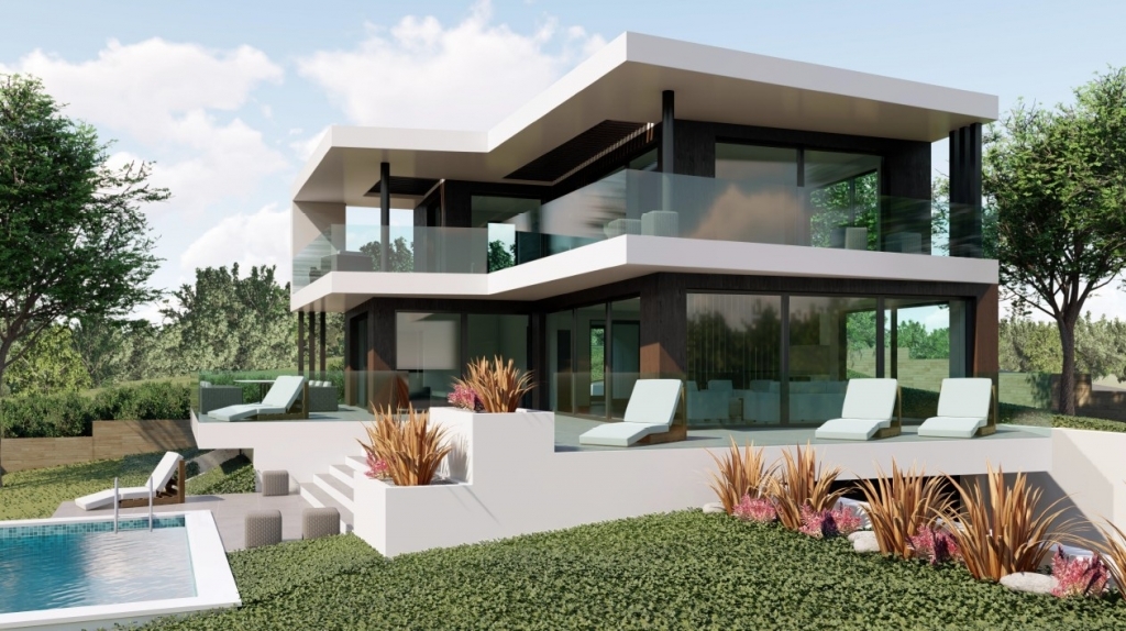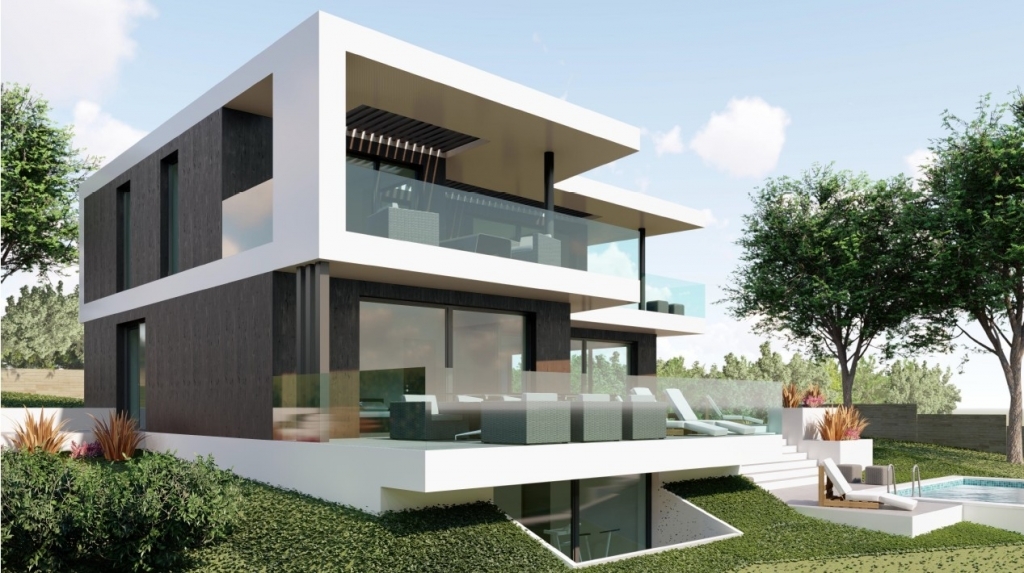 Egy elismert építész által készített koncepcióterv elérhető, mely egy háromszintes, kb. 300 nm összterületű családi ház megvalósítását vázolja.