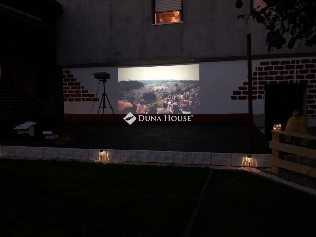 A kertben egy hangulatos pavilon található világítással, hangfallal, amely kellemes helyszínt biztosít a nyáresti beszélgetésekhez, grillezéshez, baráti társaság összejöveteléhez egybekötve egy filmnézéssel, amit a ház oldalán meg tudunk tekinteni.