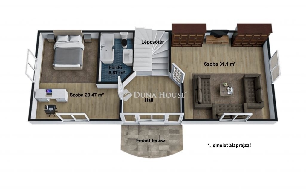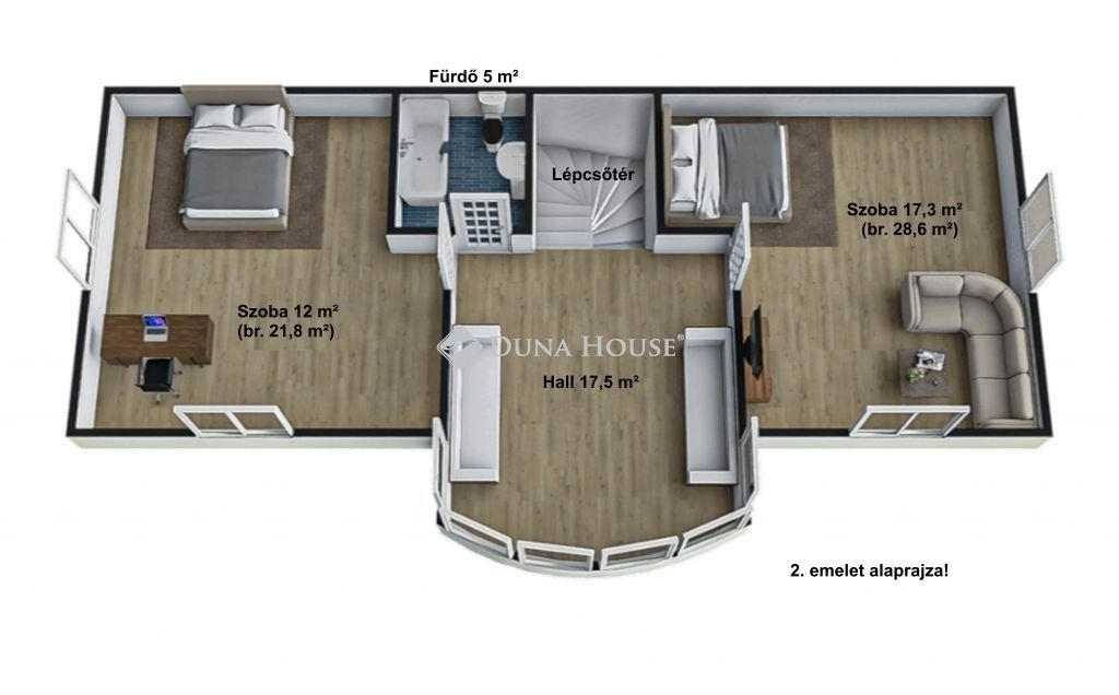 - 20 m2-nél nagyobb, parkettával burkolt szobák