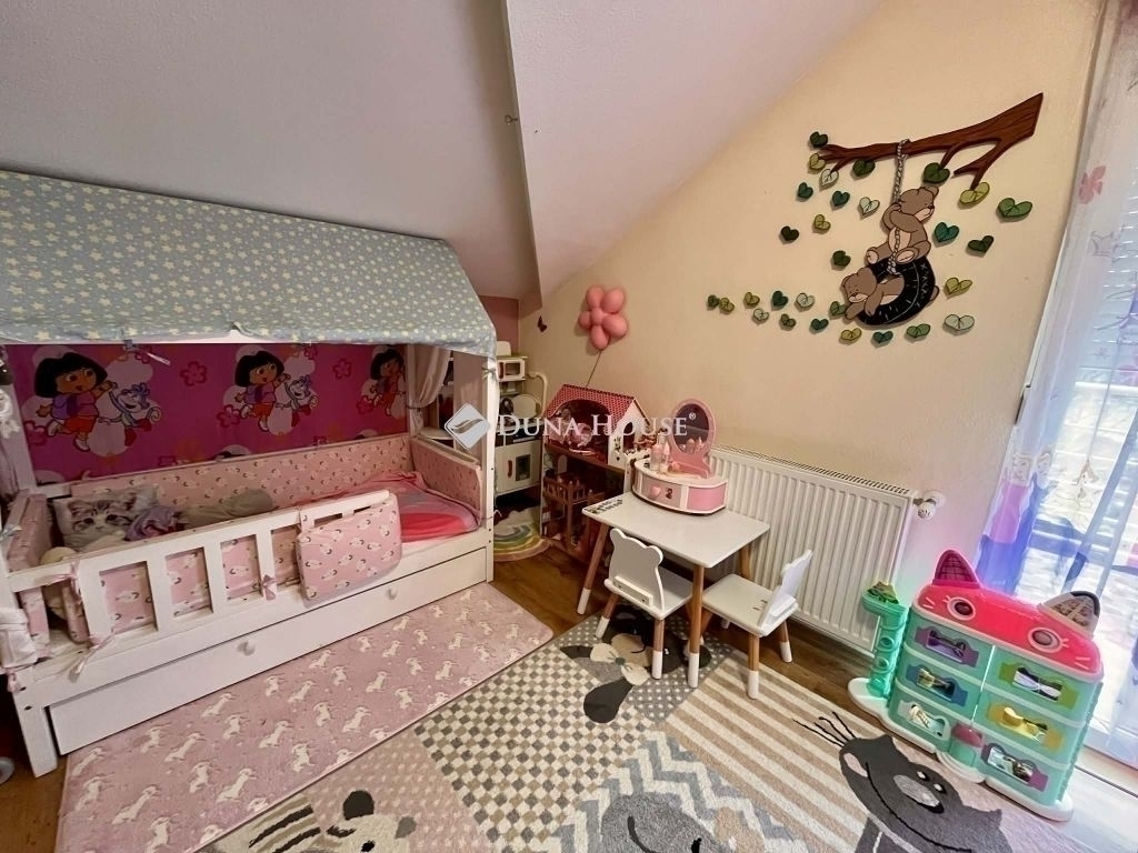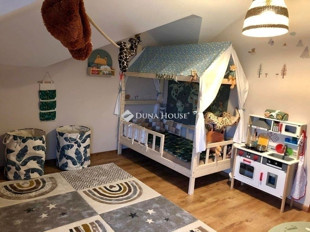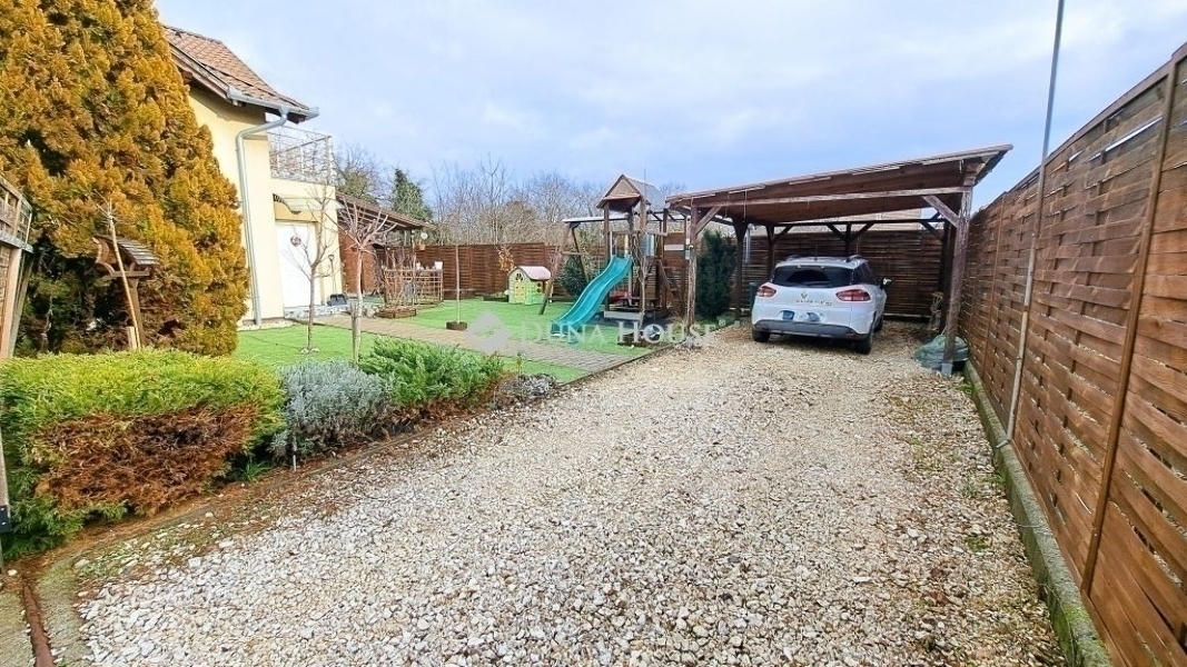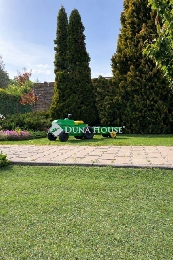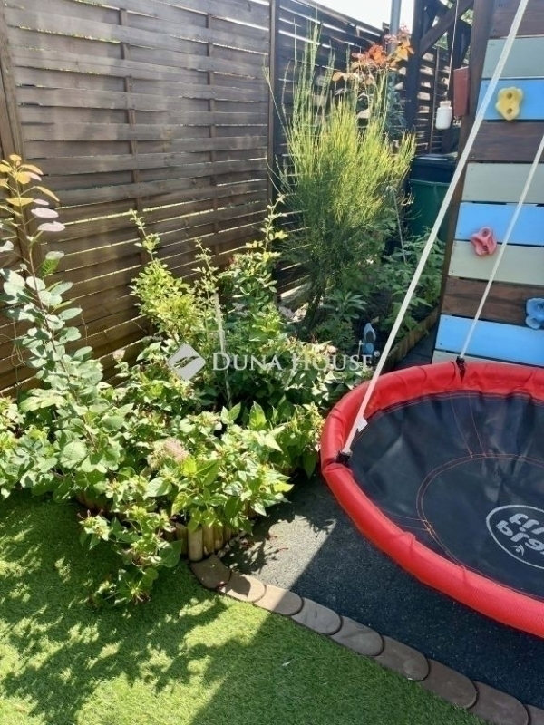 A képeken is látható, hogy a kert mérete ideális gyermekes családok számára is. Játszótér, homokozó, medence és tároló is kényelmesen elfér benne, amely biztosítja a gyerekek számára az önfeledt játszás örömét.