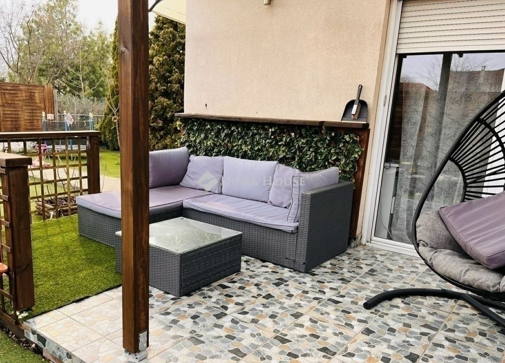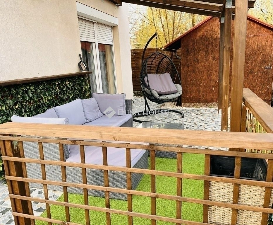 A tágas és világos nappaliból közvetlenül ki tudunk menni a teraszra/ udvarra, amely ideális helyszíne lehet a nyáresti grillezéseknek és beszélgetéseknek.