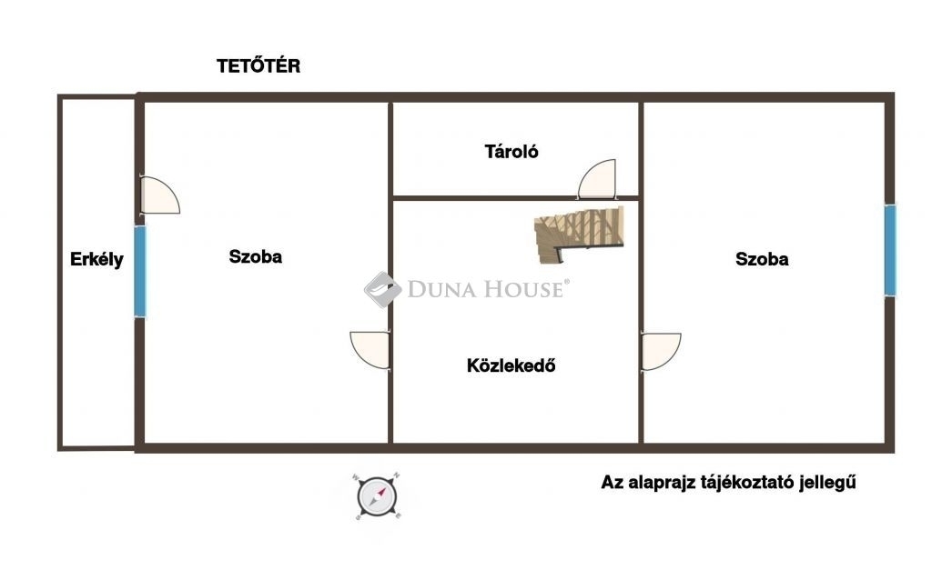 A TETŐTÉR beépített 51,3 m2 (bruttó 61,8 m2) melyen található