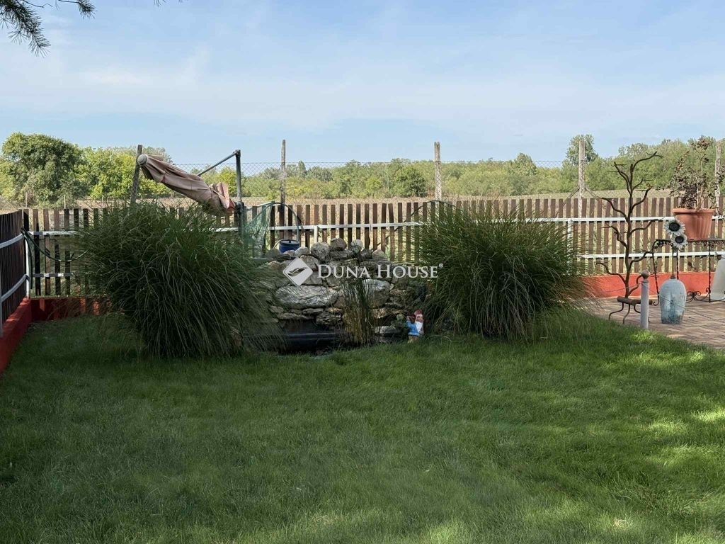 A ház környezetében viacolor burkolat, hangulatos kiülő, automata öntözőrendszer, valamint egy kis halastó is helyet kapott valódi békés oázis.