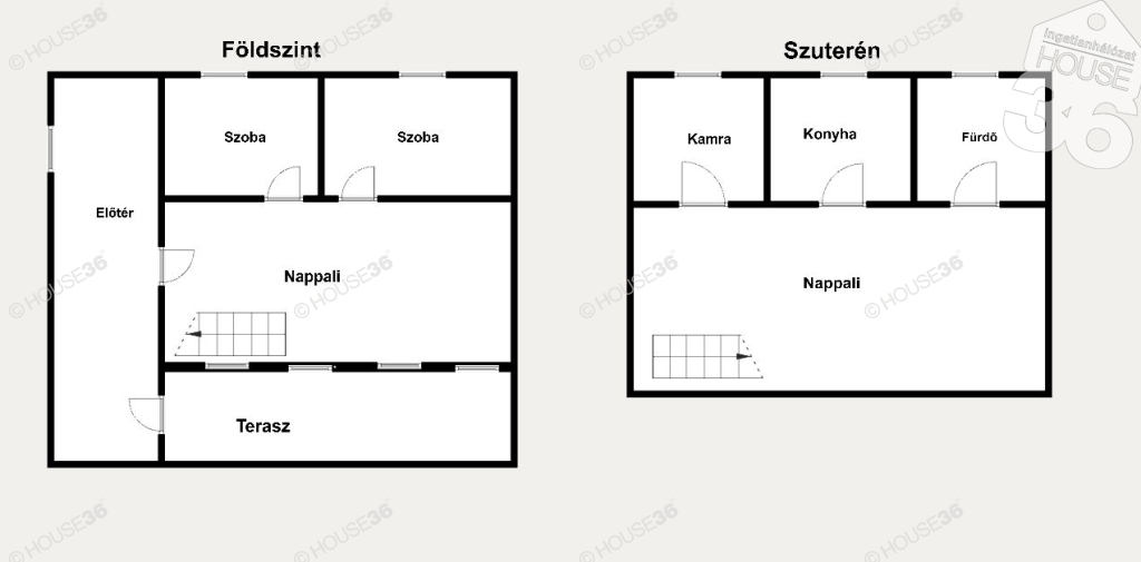 -szuterénben : nappali-étkező, kamra, konyha, fürdőszoba