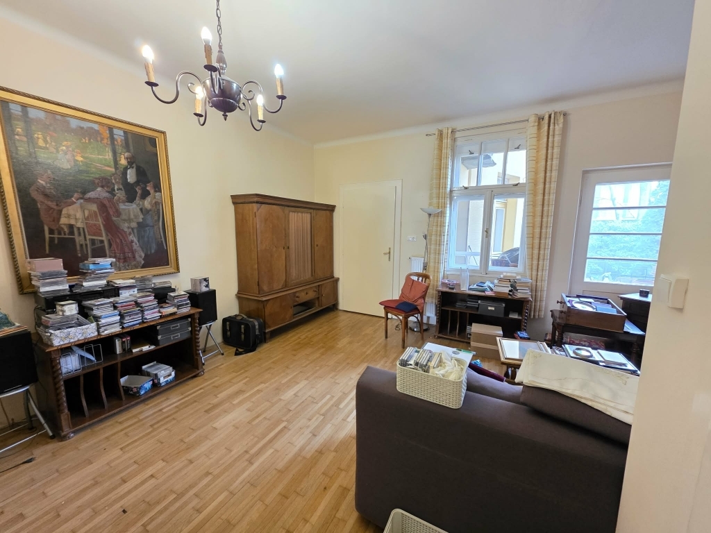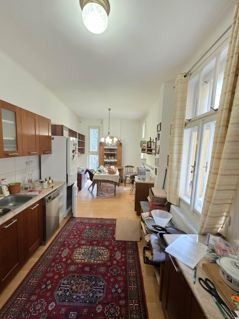 Történelmi belvárosban a Mária utca közepén, első emeleti lakás eladó!