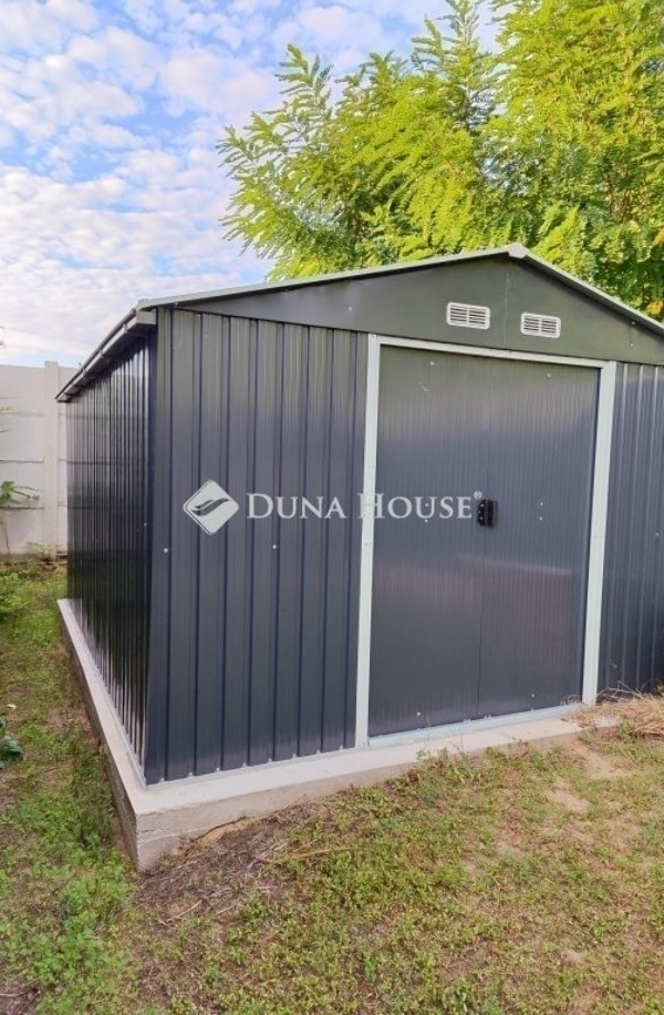 Az kertben egy 36m2-es dupla garázs és egy 12m2-es tároló található még. Az utcafronti kapu automatizált.