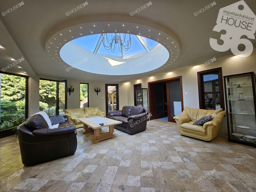 Kecskemét egyik legjobb utcájában, a Vacsiközben, 1166 m2-es dupla telken, kb.300 m2-es, tetőtér beépítéses, 2 nappali + 5 szoba + 2 fürdőszobás, igényesen berendezett és nívós anyagokból épült (mészkő, extra szigetelés), minden igényt-és extrát kielégítő luxus családi ház eladó!