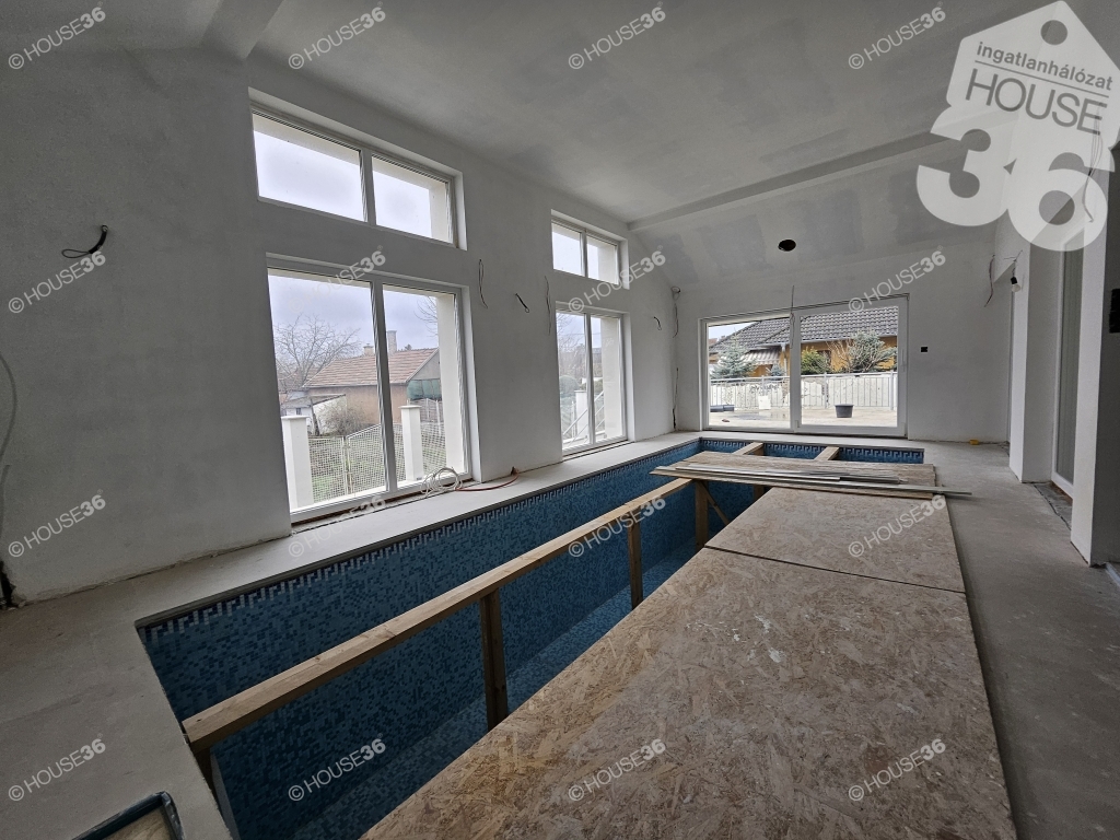 -burkolt beltéri medence (terasz-és nappali felé) még befejezésre vár, hozzá zuhanyzó-és wc